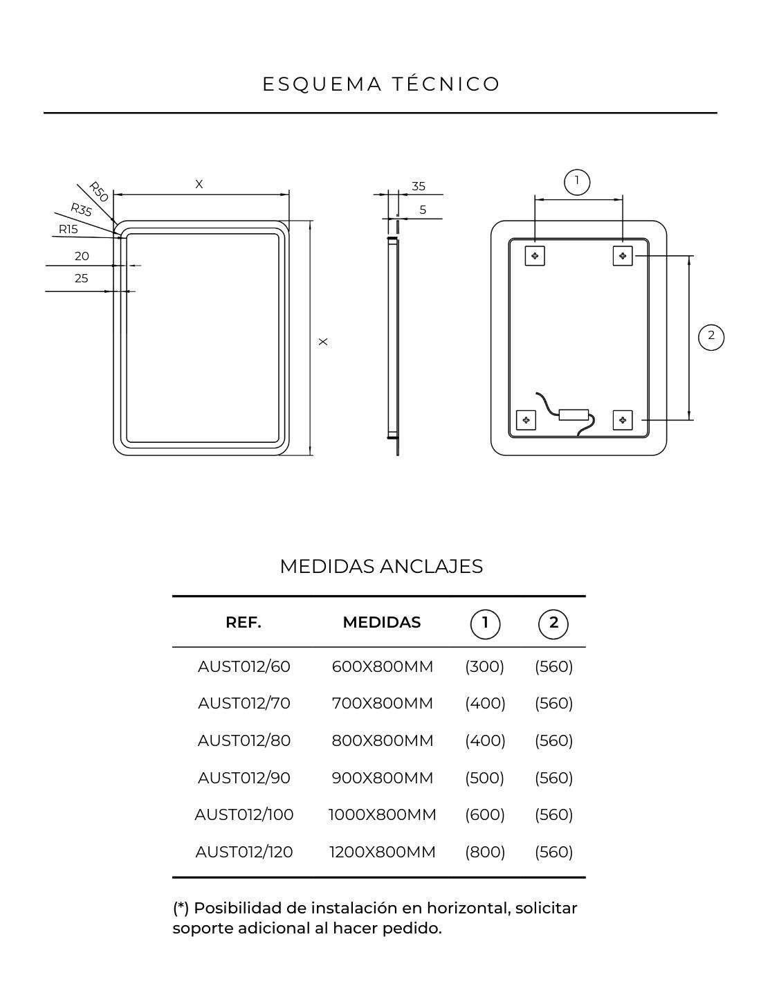 - Medidas disponibles del espejo: