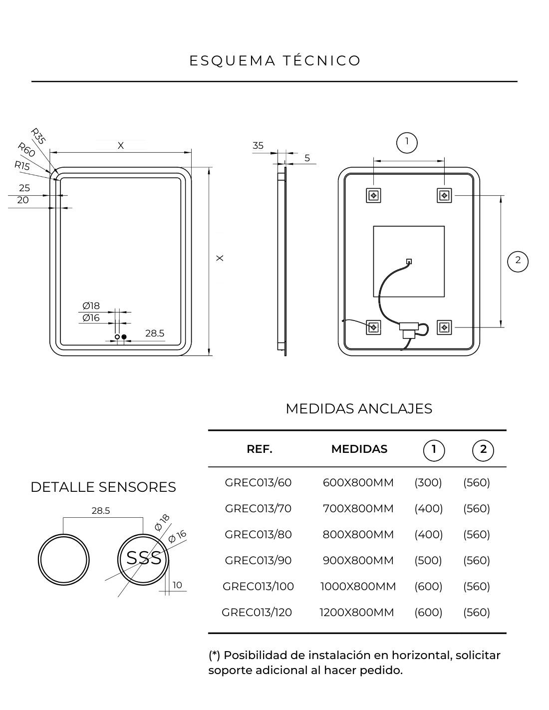 60, 70, 80, 90, 100 y 120 cm. ancho x 80 cm. alto.