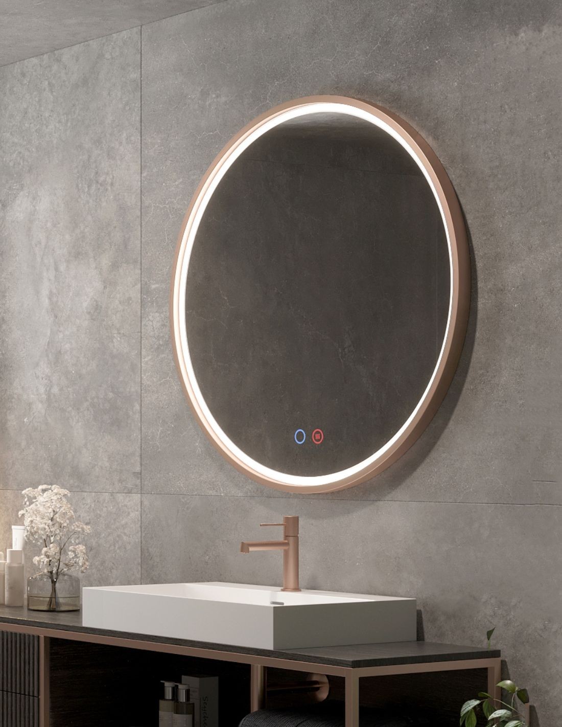Espejo redondo oro rosa modelo PARÍS de LED Imex. ¡Dale a tu baño un toque elegante y sofisticado con nuestro modelo París! Si buscas darle a tu cuarto de baño un toque elegante y moderno, sin duda este es tu espejo. Además, únete a las tendencias de los espejos redondos y los detalles en tonos dorados en el baño.