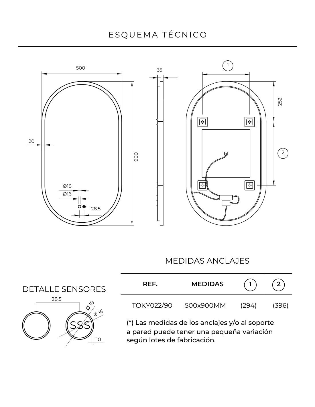 - Medidas disponibles del espejo: 50 cm x 90 cm