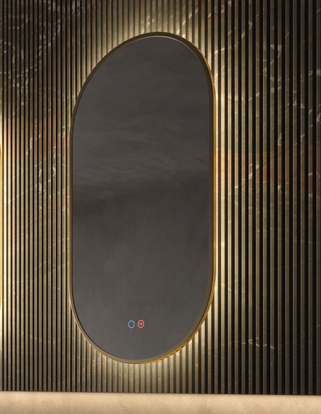 Espejo ovalado dorado modelo TOKYO LED de Imex. ¡Dale a tu baño un toque elegante y sofisticado con nuestro modelo Tokyo! Si buscas darle a tu cuarto de baño un estilo moderno y elegante, sin duda, este es tu espejo. Además, únete a las tendencias de los espejos ovalados y los detalles en dorado para tu cuarto de baño.