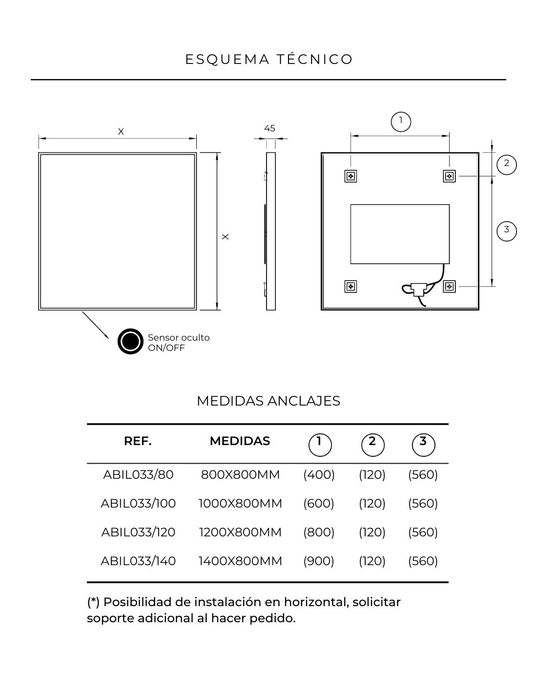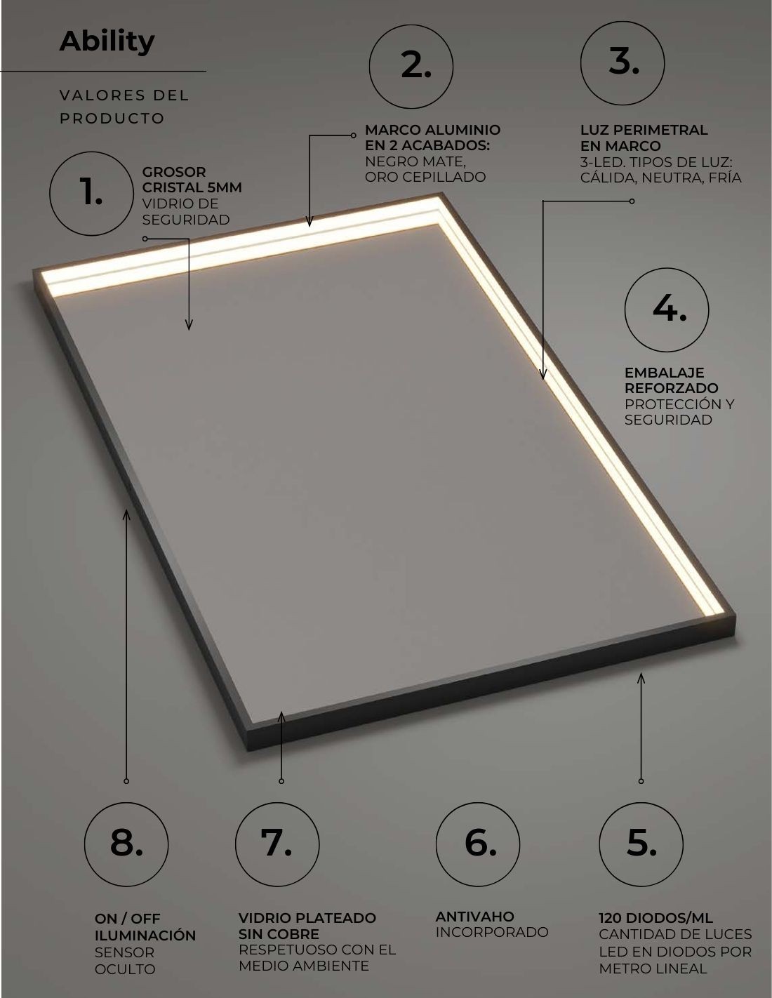 Espejo con sensor oculto modelo ABILITY de LED Imex.