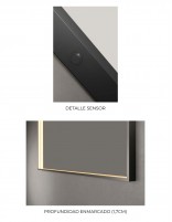 - Un sensor oculto en el marco on/off para luz led y antivaho incorporado.