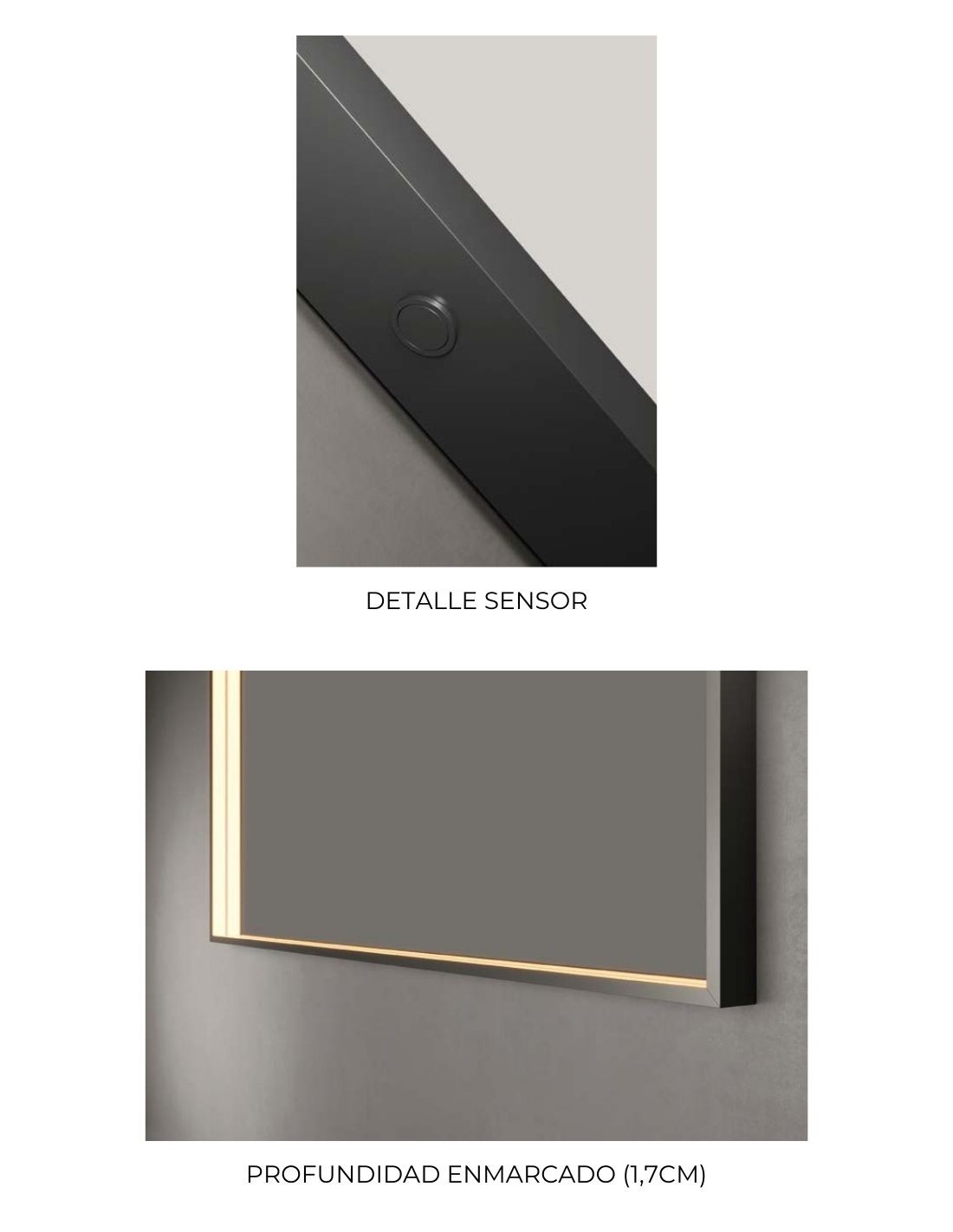 - Luz perimetral frontal integrada en marco de 1.7 cm.