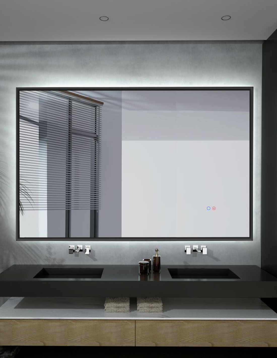 Espejo rectangular acero inoxidable modelo California de LED Imex. ¡Dale a tu baño un toque elegante y sofisticado con nuestro espejo! Si buscas darle a tu cuarto de baño un estilo único y moderno, sin duda, este es el modelo que vas buscando. Únete a las tendencias de los detalles en negros o black gun metal.