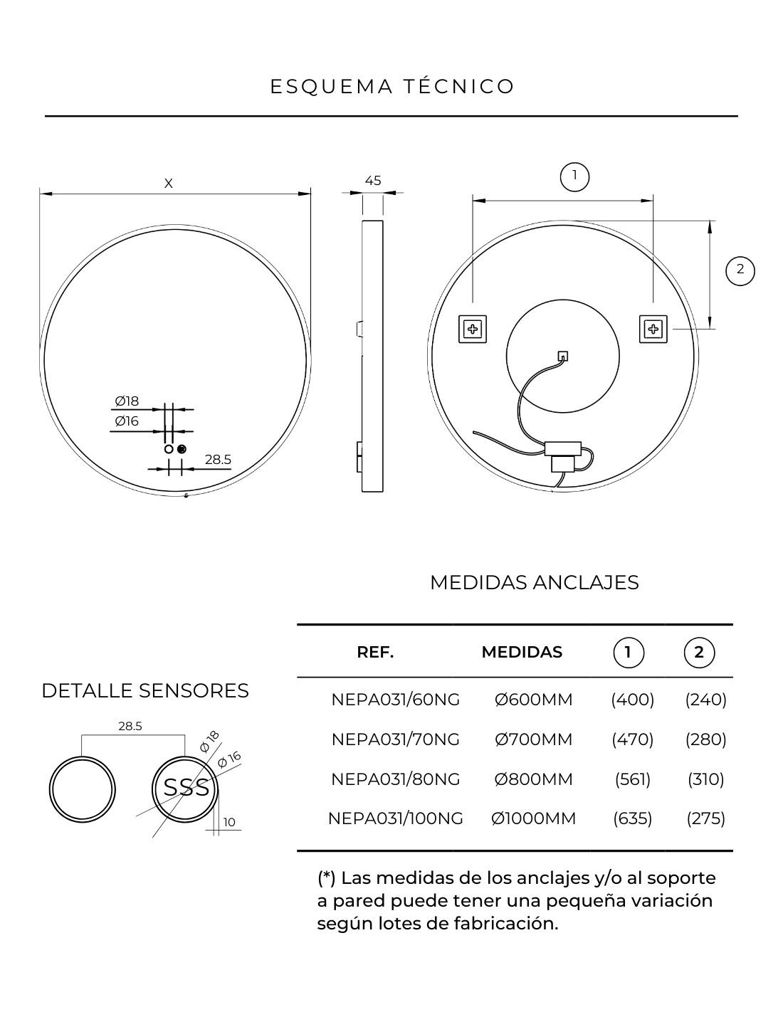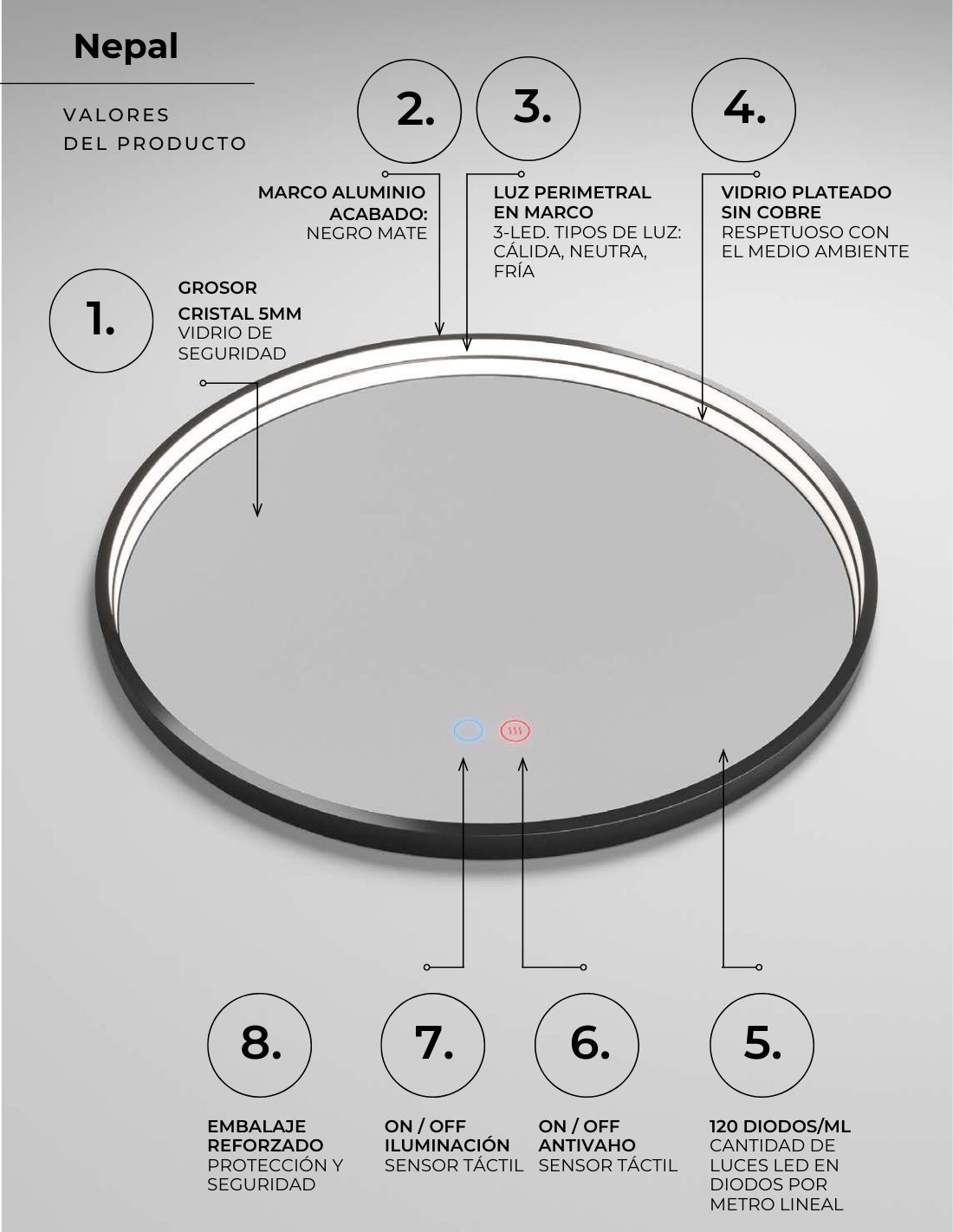 Espejo dorado redondo - PARÍS oro cepillado de LED Imex
