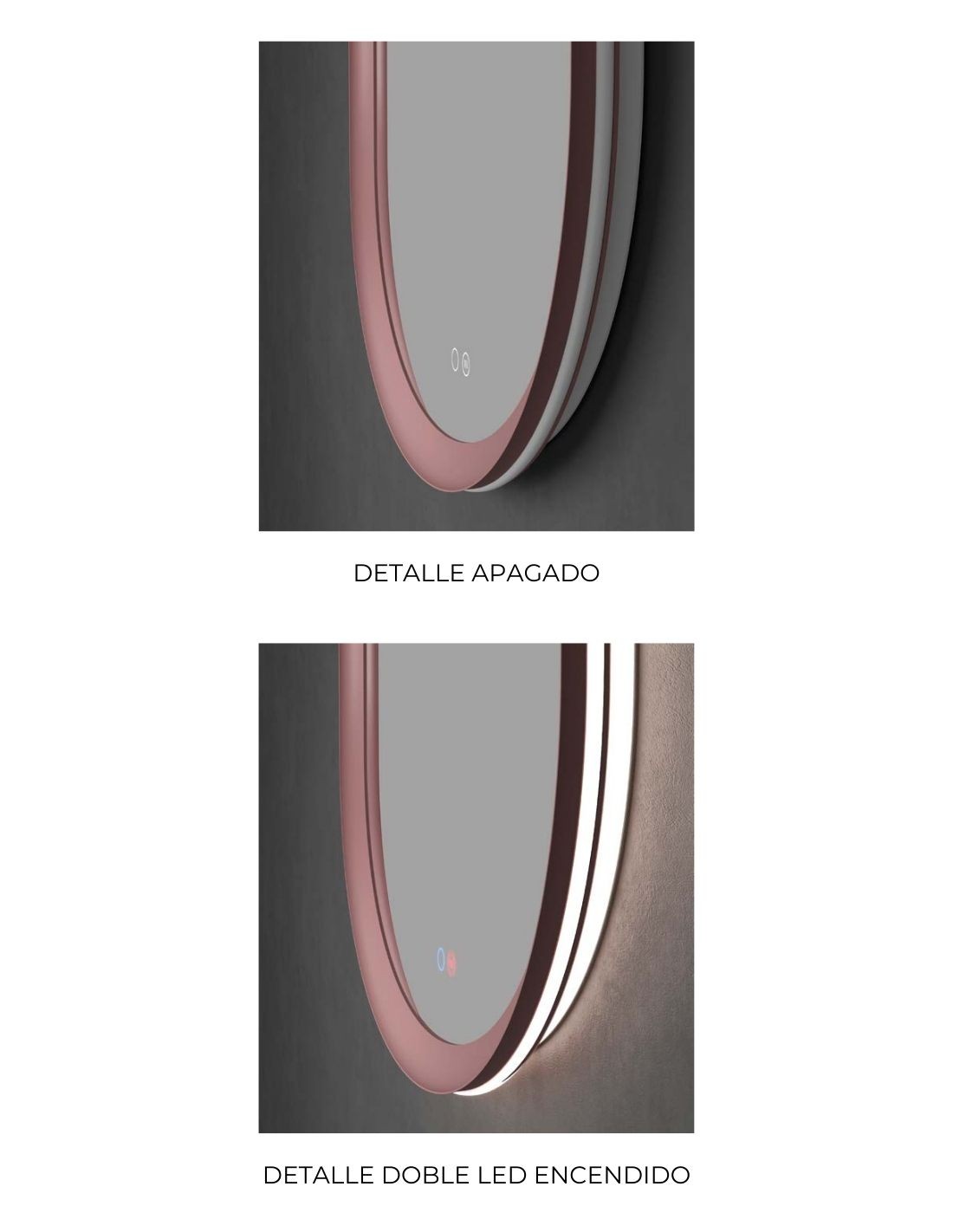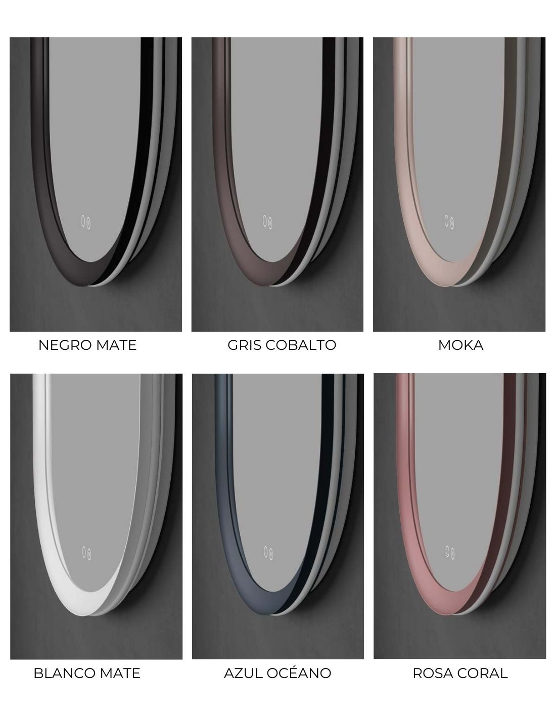 Espejo ovalado baño - diferentes colores MILANO de LED Imex. ¡Dale a tu baño un toque elegante y sofisticado con nuestro espejo! Si buscas un diseño moderno y elegante para tu cuarto de baño, este es el modelo que vas buscando. Además, únete a las tendencias de los detalles en colores para el cuarto de baño.