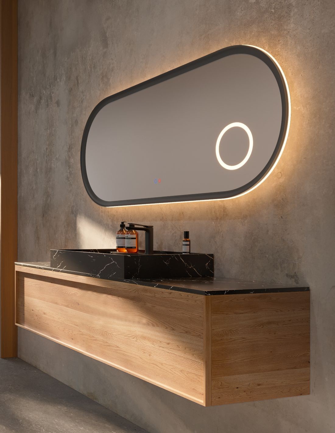 Espejo ovalado led - con aumento led RIMINI de LED Imex. ¡Dale a tu baño un toque elegante y sofisticado con nuestro espejo! Si buscas darle a tu cuarto de baño un estilo único y elegante, sin duda este es el modelo que vas buscando. Además, únete a las tendencias de los detalles en negro para el cuarto de baño.