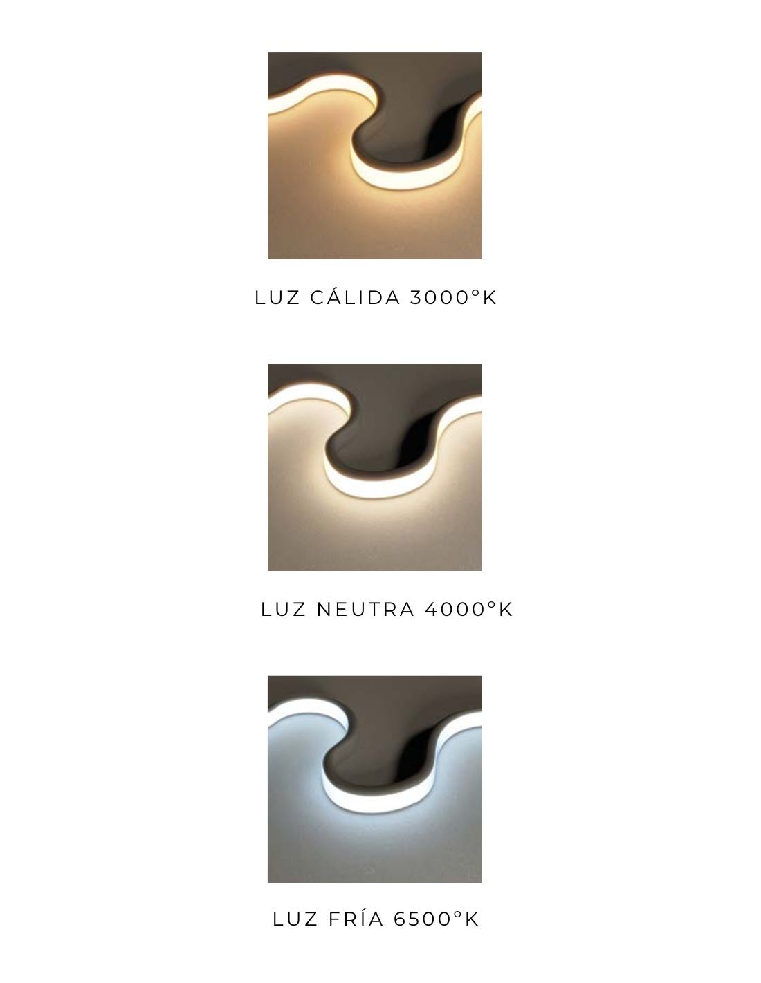 - LUZ CÁLIDA: 3000ºK // NEUTRA: 4000ºK // FRÍA: 6500ºK intercambiable y regulable en intensidad con sensor.