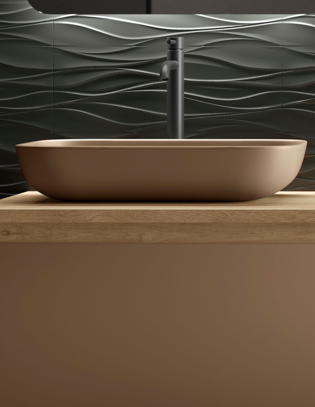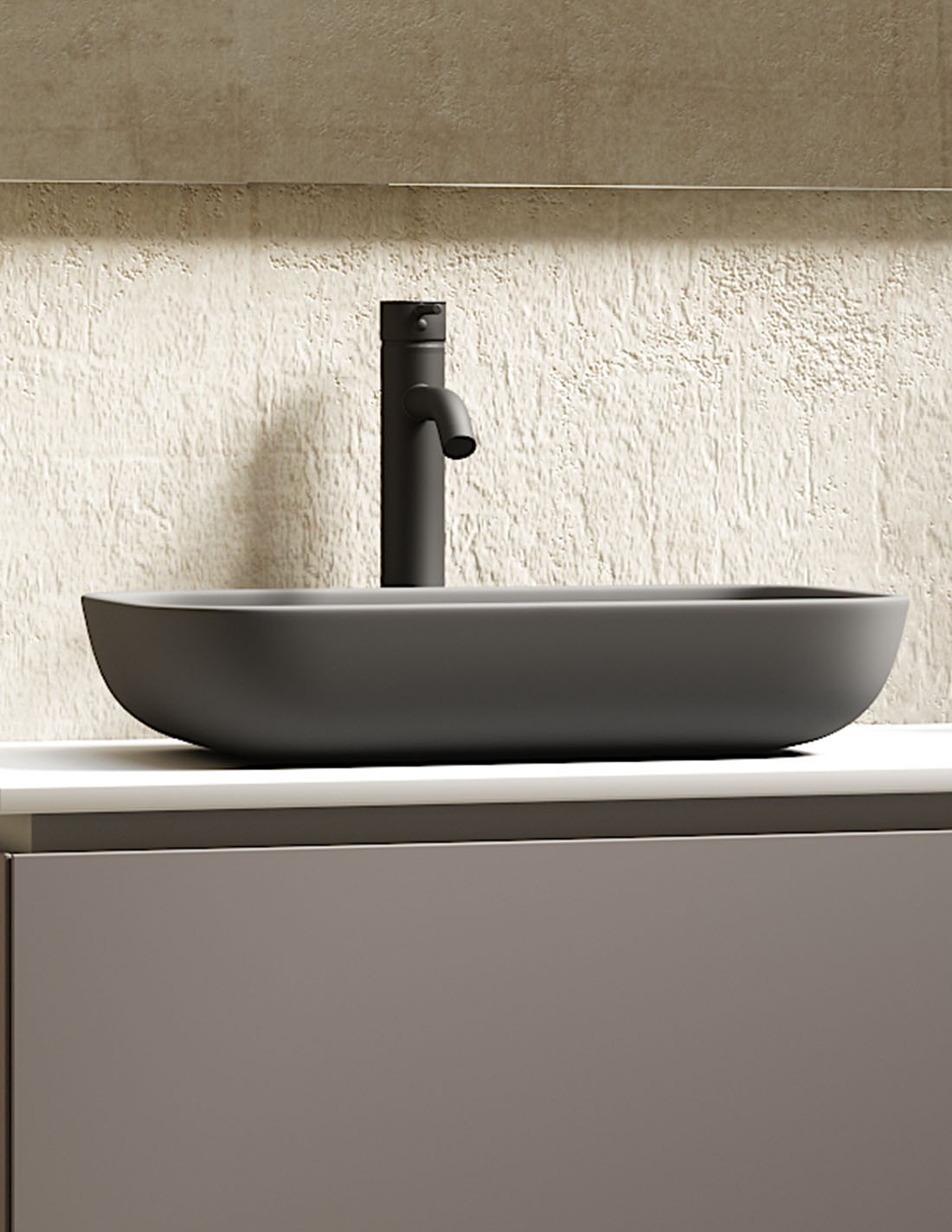 Los lavabos sobre encimera de resina representan la fusión ideal entre estética vanguardista y practicidad. Su colocación sobre la encimera les confiere un protagonismo escultórico, mientras que el material de resina permite una gran versatilidad en formas y colores mate muy actuales. Este material no poroso es cálido al tacto, altamente resistente a los impactos y muy fácil de mantener, garantizando una higiene superior. El resultado es una pieza de diseño que aporta calidez, modernidad y durabilidad al espacio de lavado.