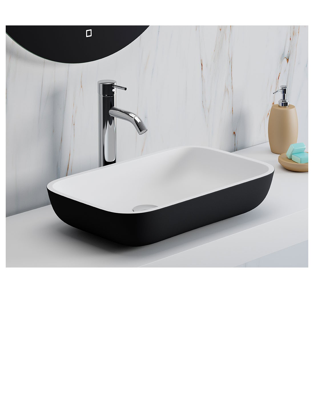 Los lavabos sobre encimera de resina ofrecen una plataforma excepcional para el diseño, destacando por su versatilidad en acabados de colores mate, metalizados y el clásico blanco. El blanco mate proporciona la pureza y luminosidad esenciales para el minimalismo.