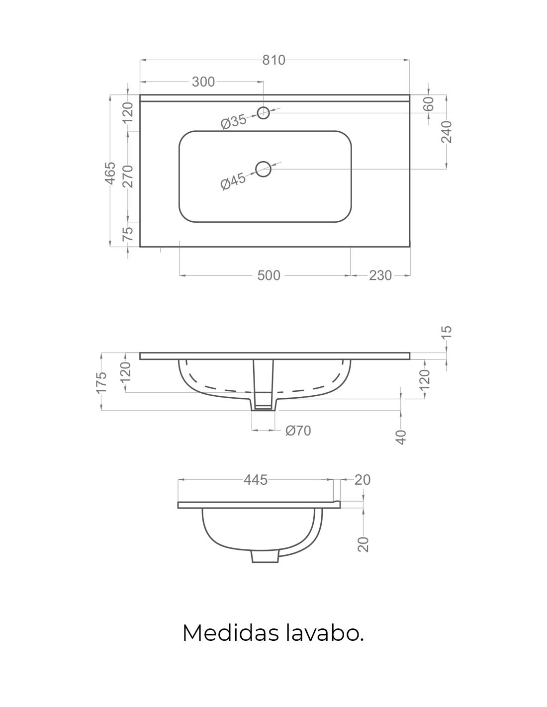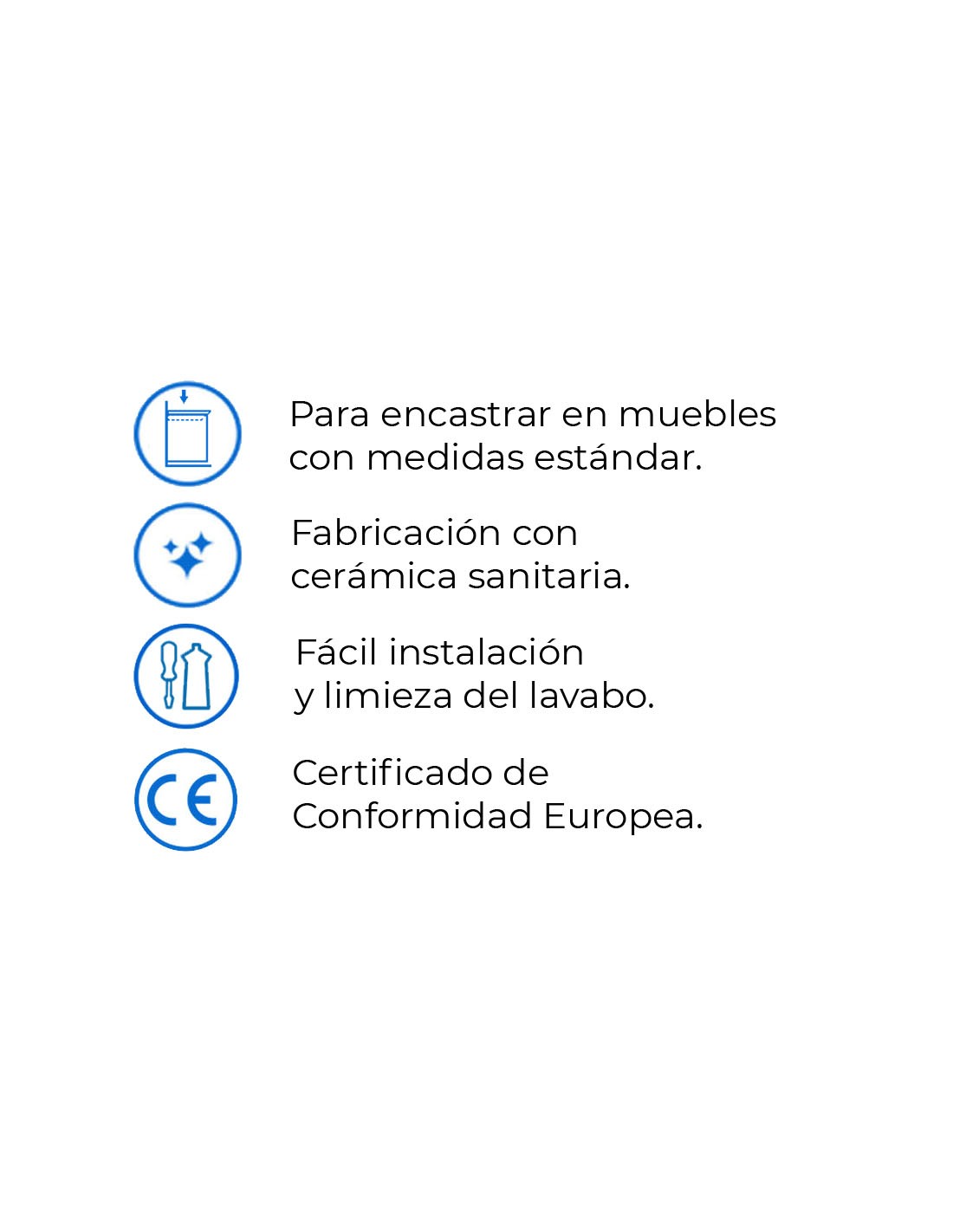 Características principales del lavabo desplazado 80 cm. ONIX: