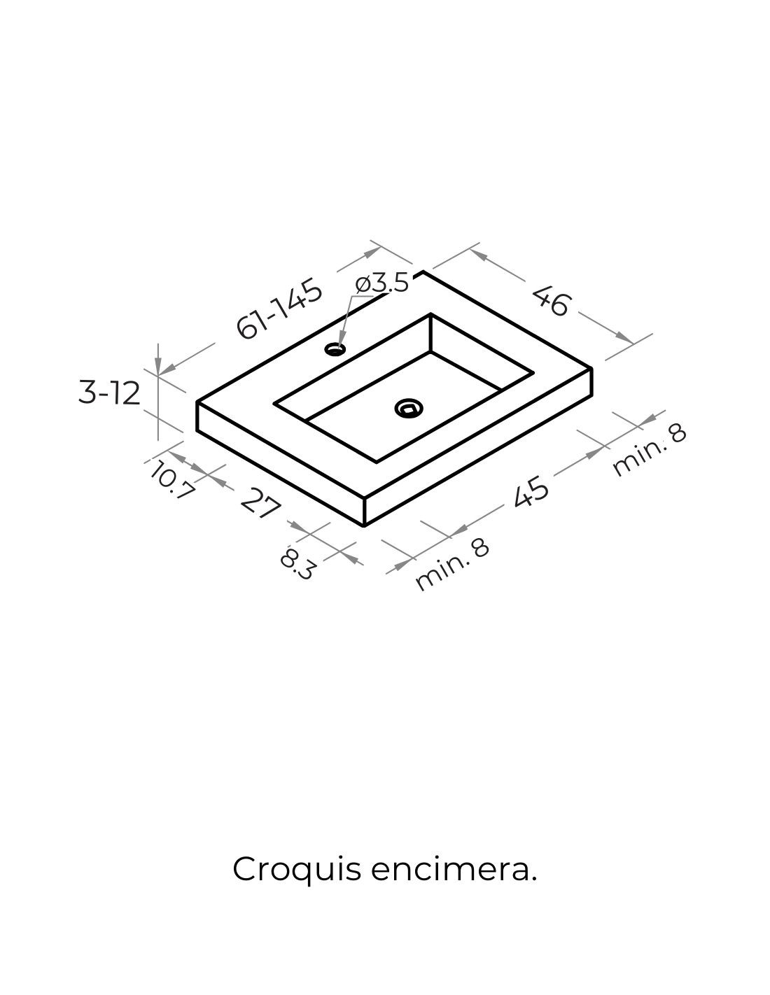 • Dimensiones del lavabo encimera: