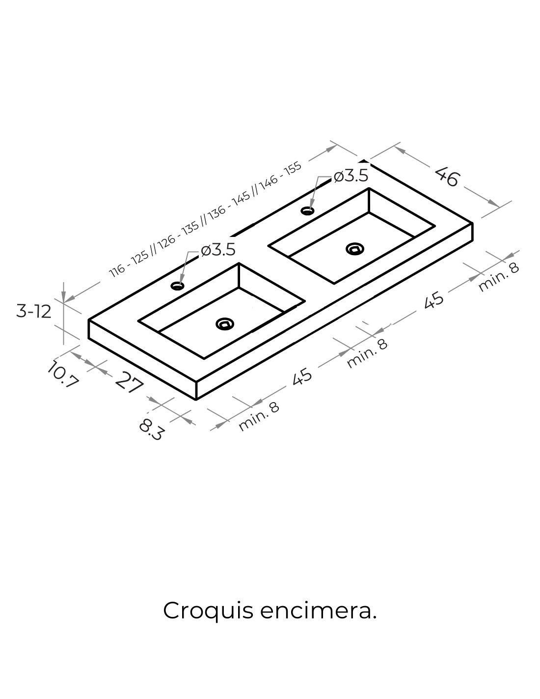 - Colores disponibles: Blanco, Calacatta o Negro Marquina.