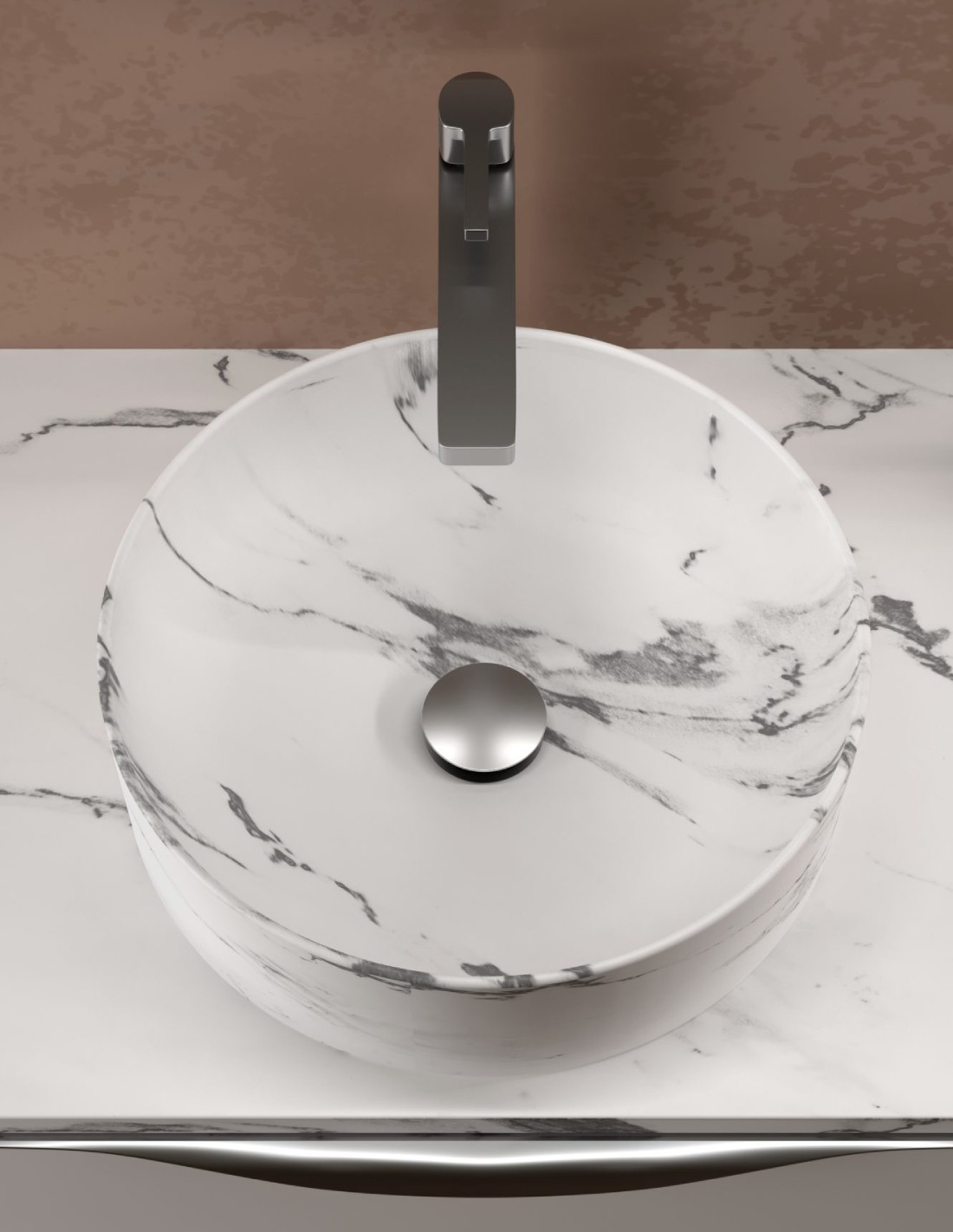 - Este lavabo redondo sobre encimera requiere válvula de clic.