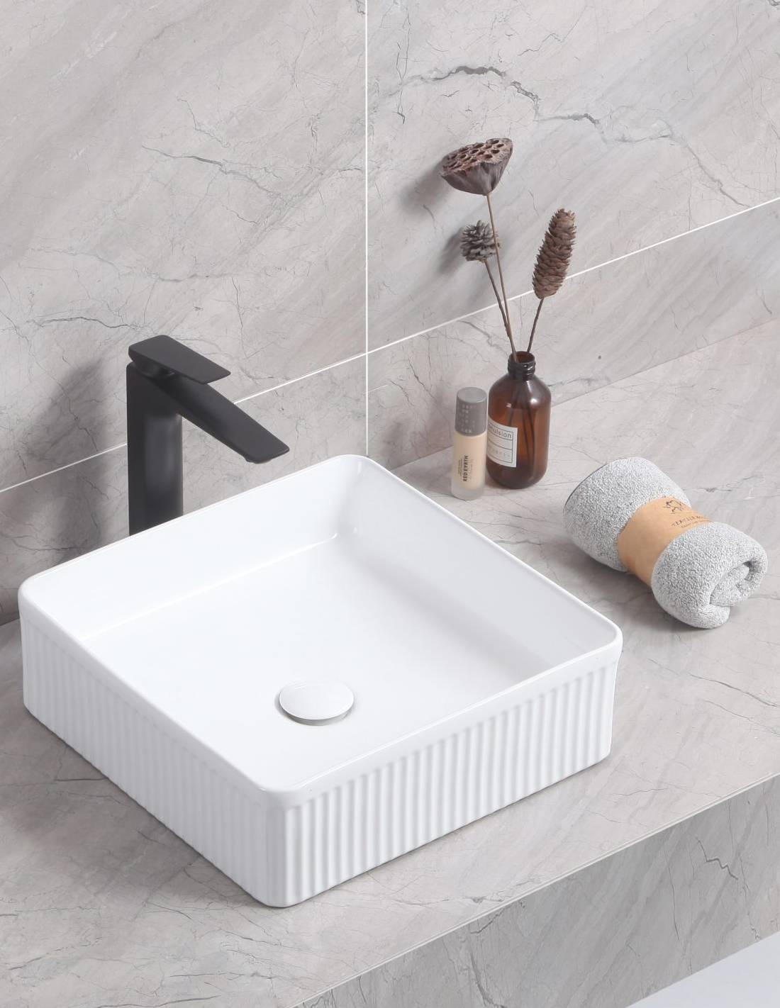 - Este lavabo redondo sobre encimera requiere válvula de clic (no incluida).